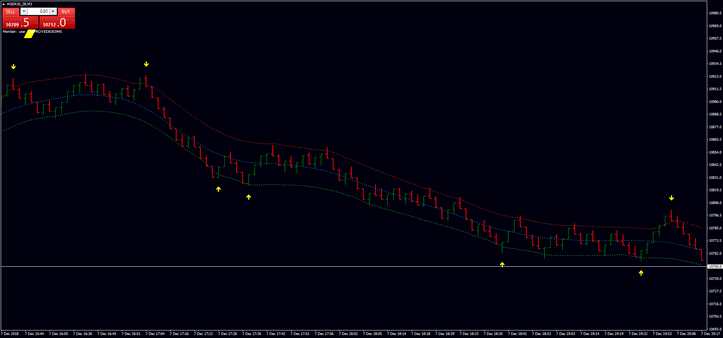 As Bandas Assimétricas Centradas TMA são um indicador de tendência que deve ser interpretado de acordo. Quando o preço sai das bandas, há uma boa chance de que ele reverta. É importante observar que as TMAs centradas sempre recalculam a largura das bandas.