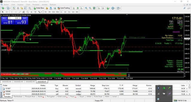 - Aplicação: A mudança de cor da HMA fornece uma indicação visual clara da direção da tendência, ajudando os traders a seguir a direção predominante do mercado.