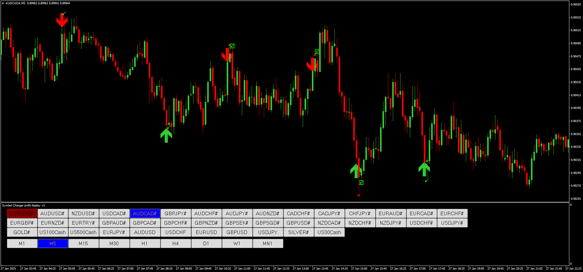 Essas setas servem como alertas visuais, ajudando os traders a identificar potenciais pontos de entrada no mercado. A beleza dessa estratégia reside em sua simplicidade: os traders podem entrar no mercado no fechamento da vela atual ou na abertura da próxima vela, dependendo de sua preferência e estilo de trading.