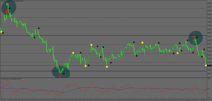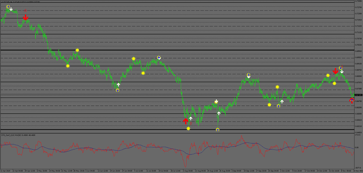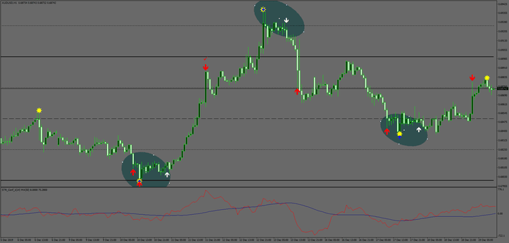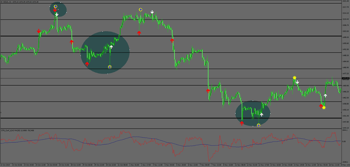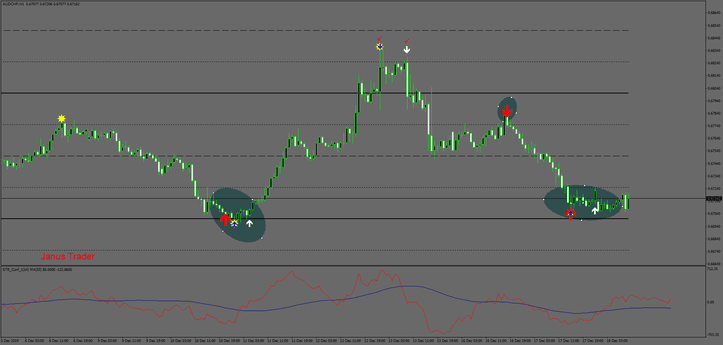 • Aplicação: Indica momentos propícios para entrar em operações de compra ou venda, dependendo da direção da seta.