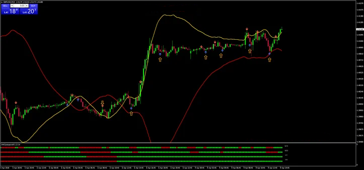 O Indicador de Seta Mistery Data gera sinais de entrada precisos, indicando momentos ideais para comprar ou vender. As setas verdes indicam compra, enquanto as setas vermelhas indicam venda.