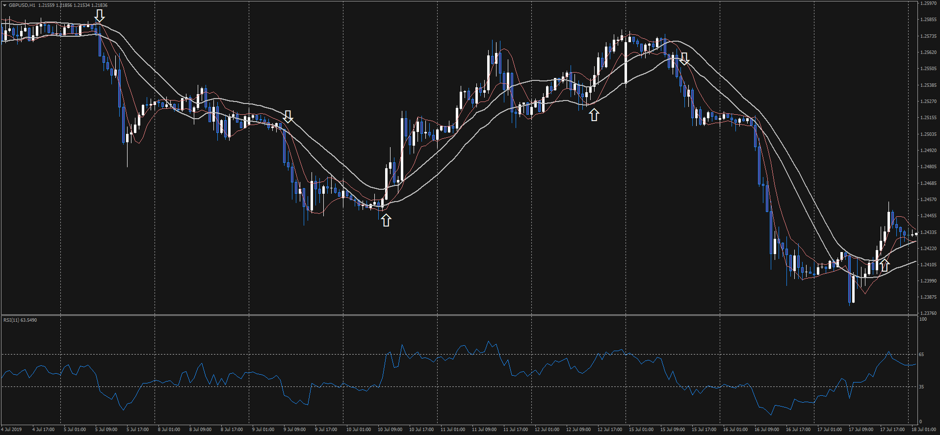 1. O preço rompe ambos os canais de médias móveis para cima.