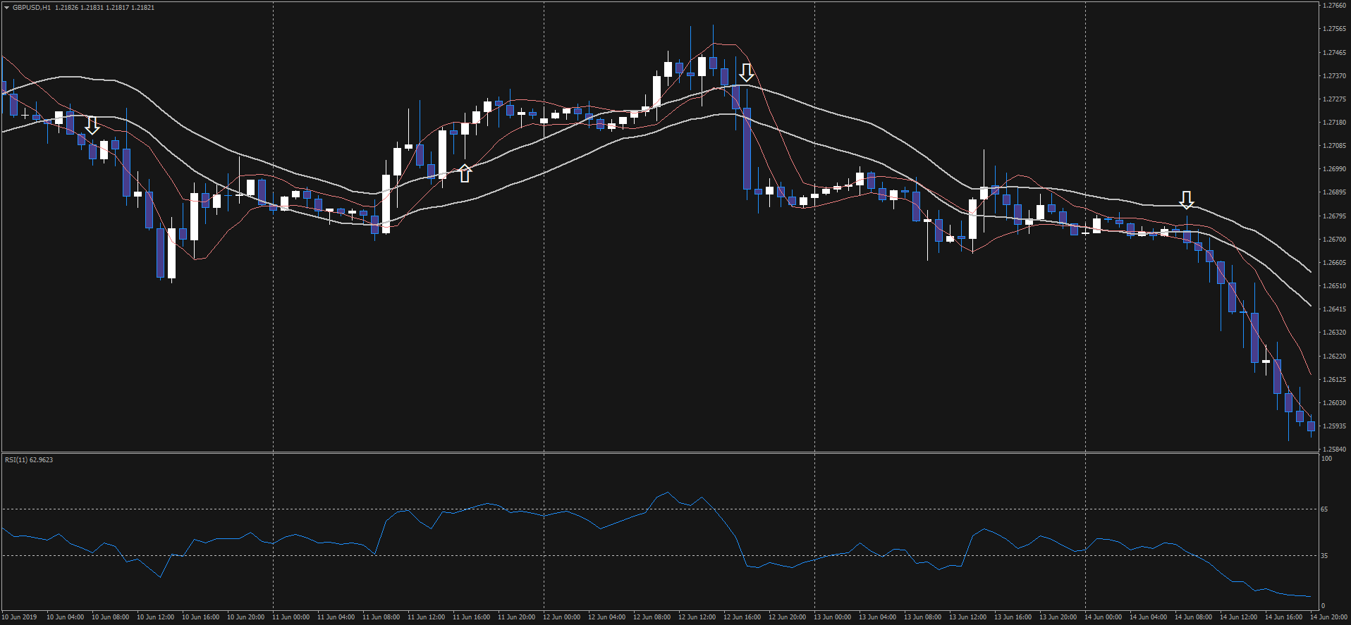 2. A linha do RSI cruza o nível 65 de baixo para cima.