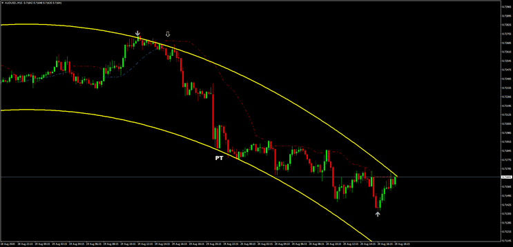 - Confirmação do 100 Pips Daily Scalper ou Aizig: Abrir posições de venda somente quando geradas pelo 100 Pips Daily Scalper (linha de ponto vermelho) ou pelas setas de venda do Aizig.