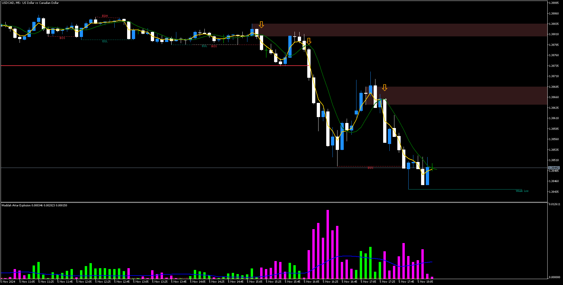 2. Média Móvel Ponderada Linear (LWMA) (5 períodos): Aplicada à média móvel suavizada de 2 períodos, esta média móvel mais lenta ajuda a filtrar sinais falsos e confirmar a tendência.