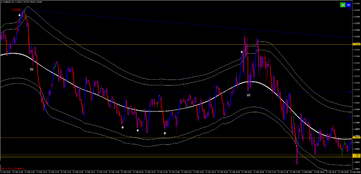 Suponha que você esteja negociando o par EUR/USD durante a sessão de Londres. Se a TMA True (56, 100 ATR período 2.0 desvio) mostrar uma seta abaixo das bandas das TMAs (72, 4, 2.9) e (72, 4, 3.6), você colocaria uma ordem de compra com expiração de 10-15 velas.