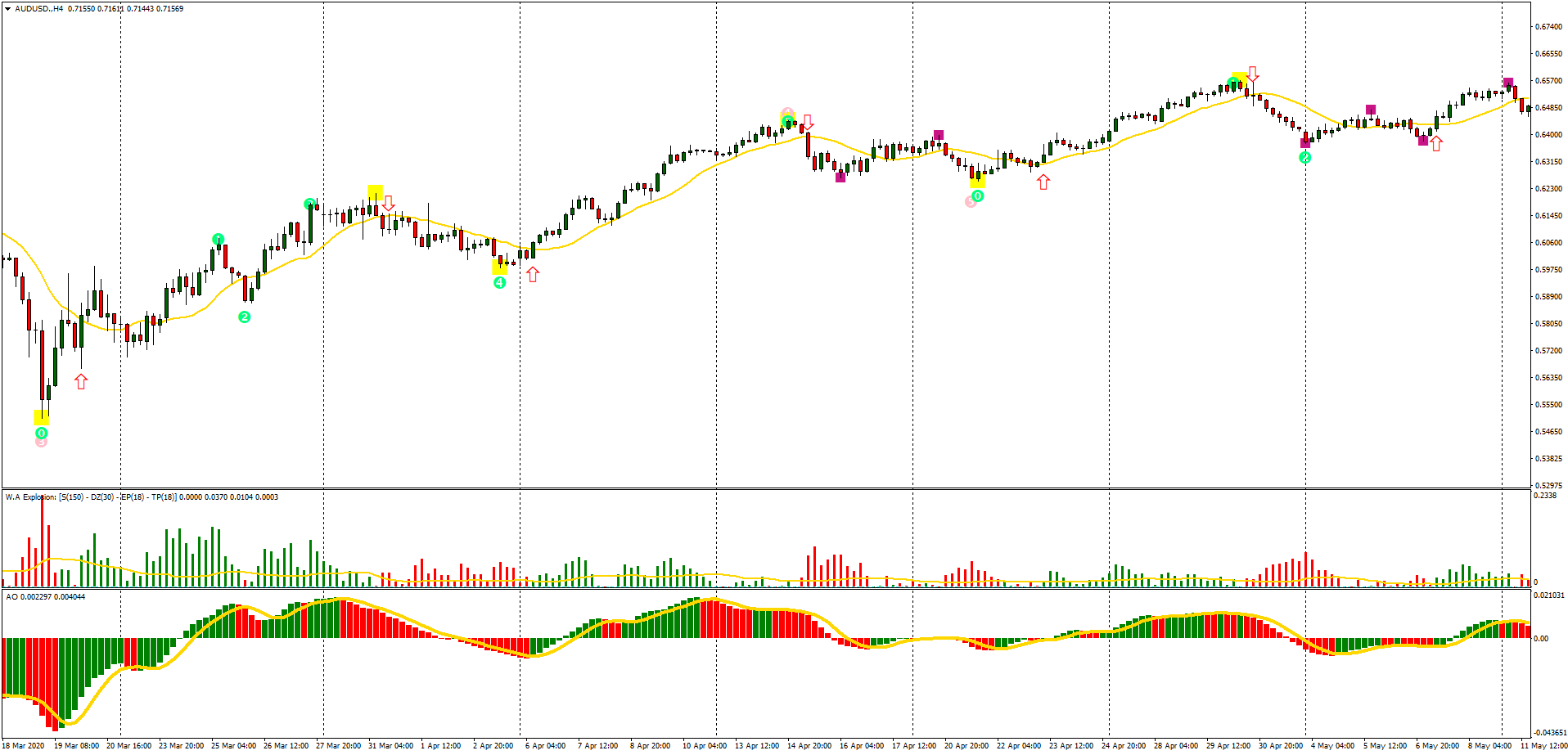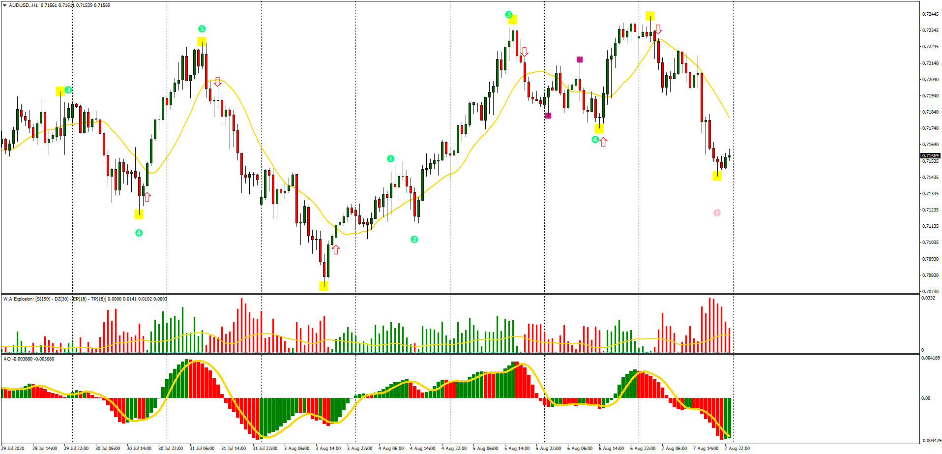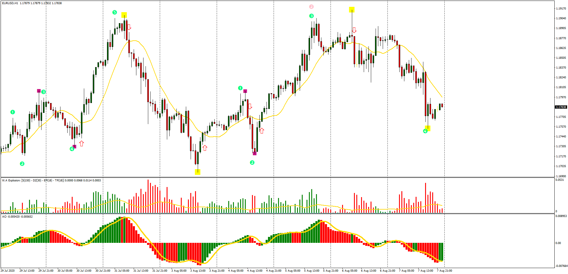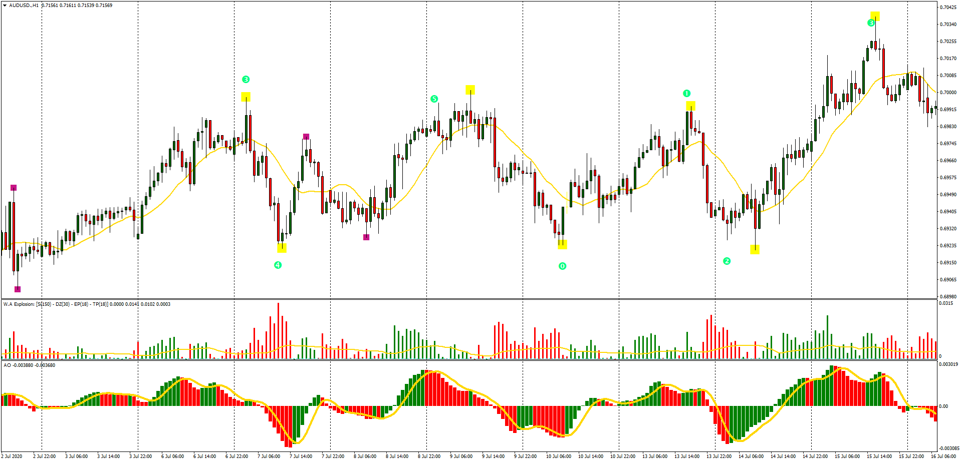- Barra do indicador W.A Explosion maior que sua média móvel.