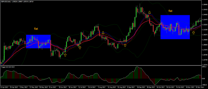 - Para gráficos diários, o alvo de lucro é de 50-80 pips. No entanto, se estiver presente uma tendência, a posição pode ser mantida aberta para um lucro maior.
