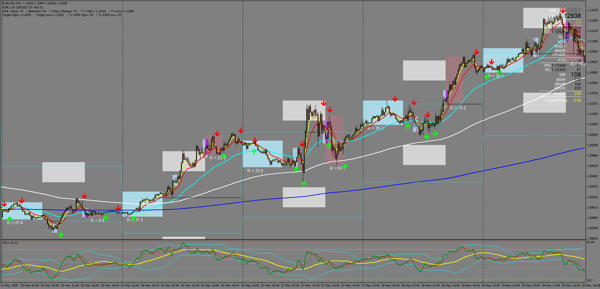O ADR é outro indicador essencial na estratégia de 15 minutos. Ele mede a faixa média de movimento de um par de moedas em um dia. Isso ajuda o trader a entender a volatilidade e a definir expectativas realistas sobre os movimentos de preço.