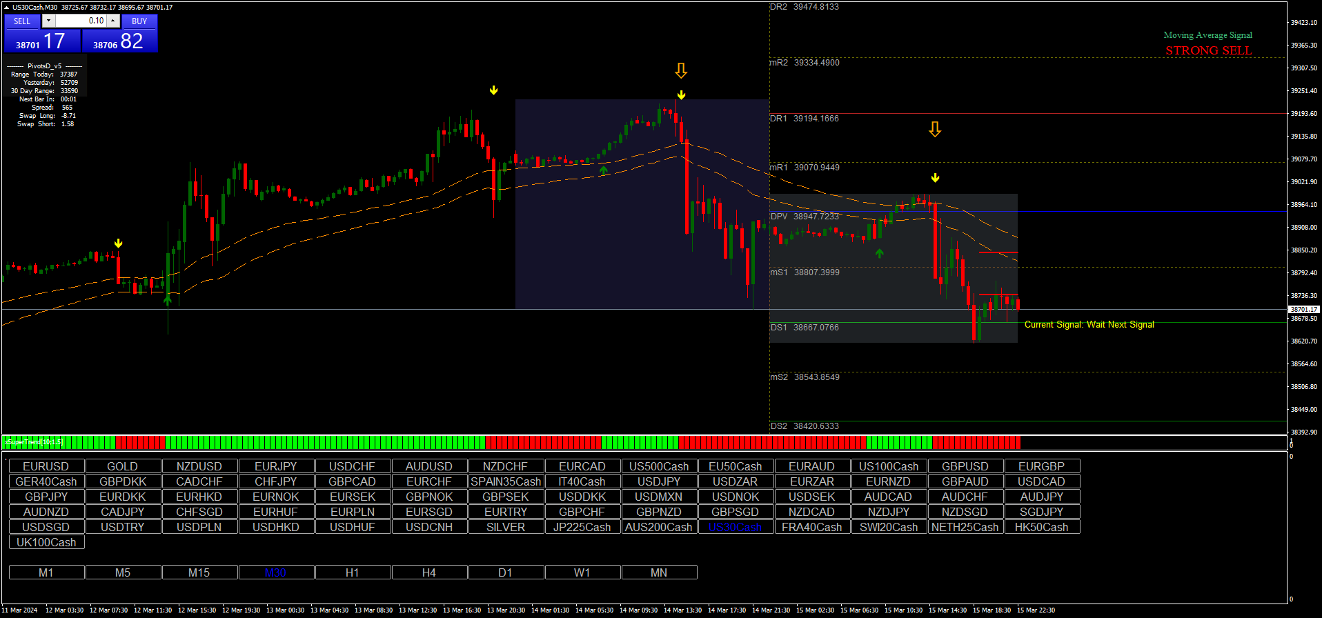 - Seta de Venda: Aparece quando as condições do mercado favorecem uma posição vendida. Indica que o preço pode cair.