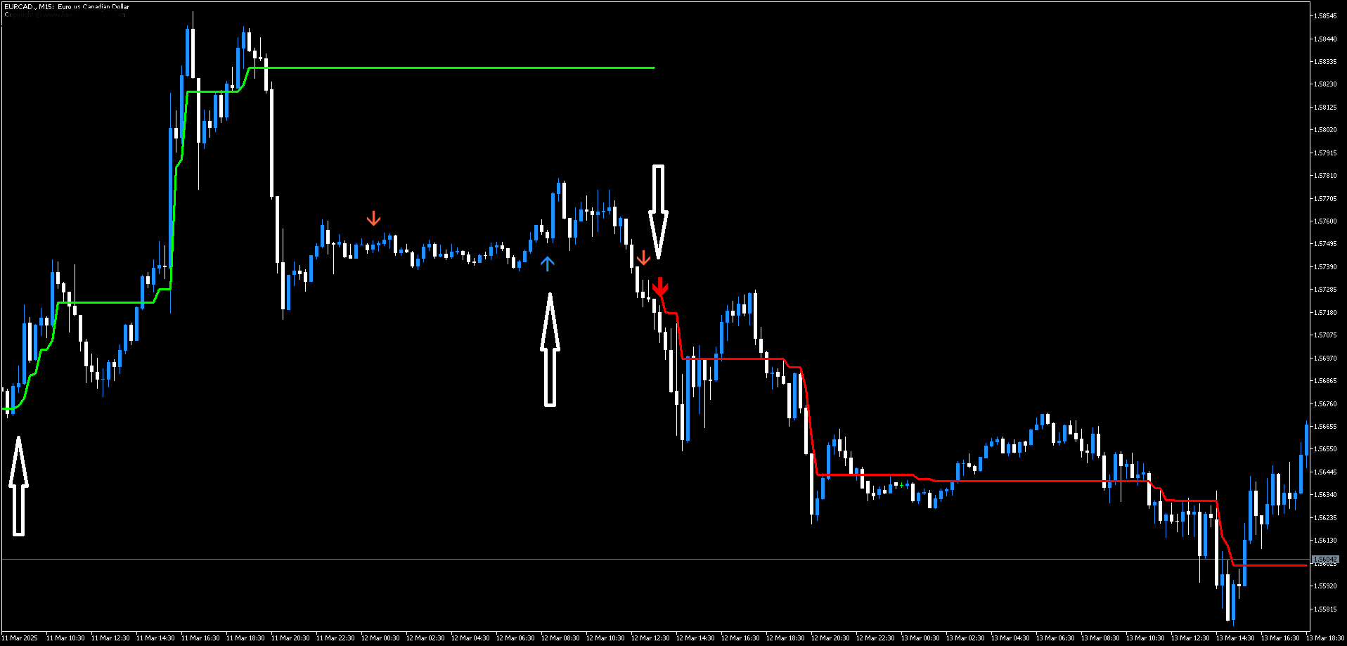 O Silver Trend Indicator funciona observando a volatilidade e os extremos de preço, gerando setas de compra (verdes ou azuis) ou venda (vermelhas ou laranjas). Ele é excelente para captar o início de movimentos, mas pode ser vulnerável a ruídos.