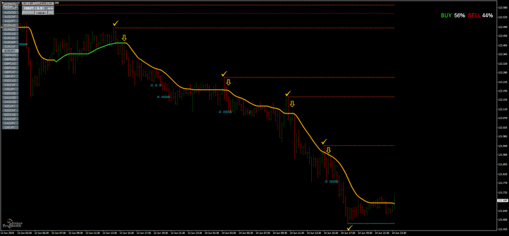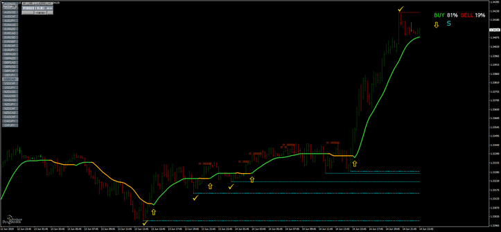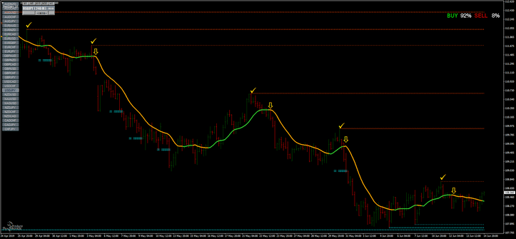 O StepMa 7.2 é um indicador de tendência que utiliza médias móveis modificadas para suavizar a ação do preço e identificar a direção predominante do mercado. Quando a linha do StepMa muda de cor, ela sinaliza uma possível mudança de tendência, servindo como um excelente ponto de entrada.