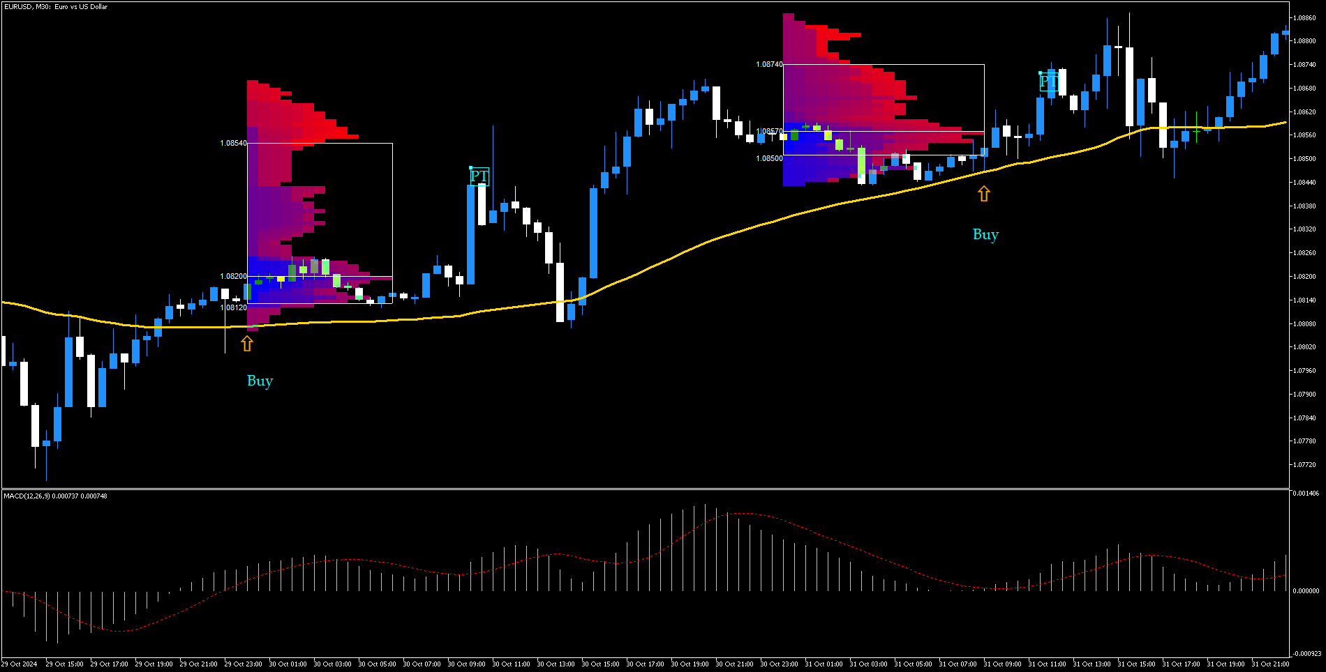 A Estratégia de Trading com Perfil de Mercado no MetaTrader 5 é uma abordagem avançada que combina o uso do indicador Perfil de Mercado com outros indicadores técnicos para melhorar a precisão das entradas e saídas no mercado. Esta estratégia é ideal para traders que desejam explorar níveis de suporte e resistência, força de tendência e reversões de mercado, sendo mais eficaz em timeframes de H1 ou superiores.