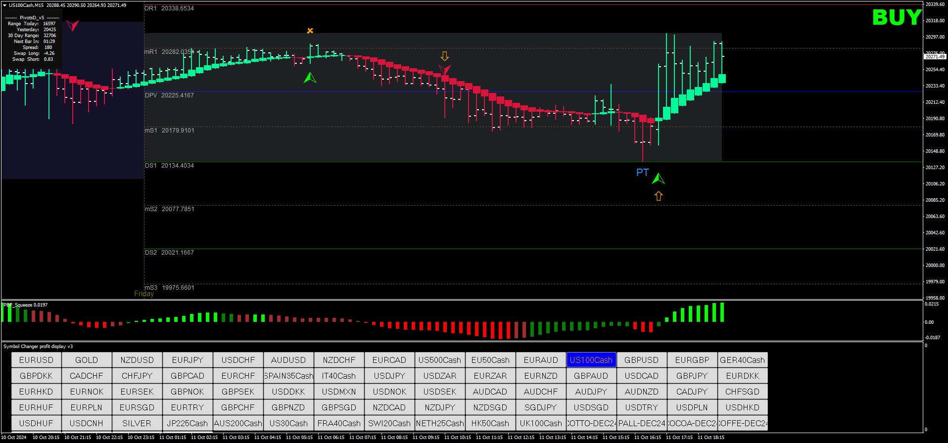- Pivot Points: O preço deve estar acima de um nível de suporte-chave de Pivot Point (por exemplo, R1, R2 ou acima do pivô central).