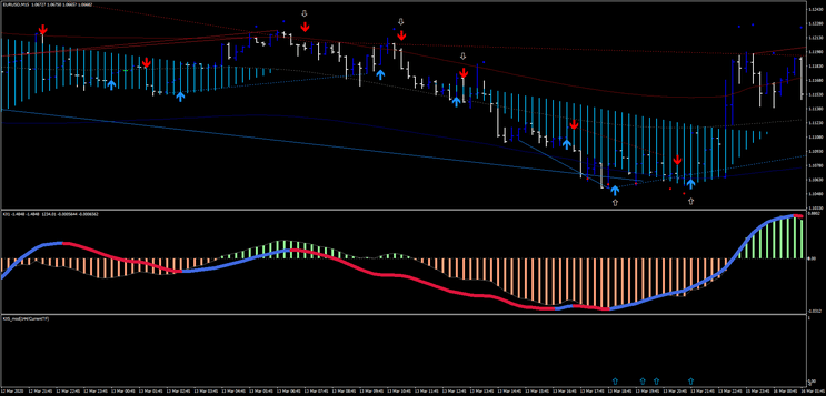 A estratégia KX Change determina a tendência geral dos movimentos de preços e identifica claramente possíveis zonas de reversão de tendência. Fornece vários tipos de sinais que ajudam os traders a fazer entradas confiáveis e rápidas após uma reversão de tendência.