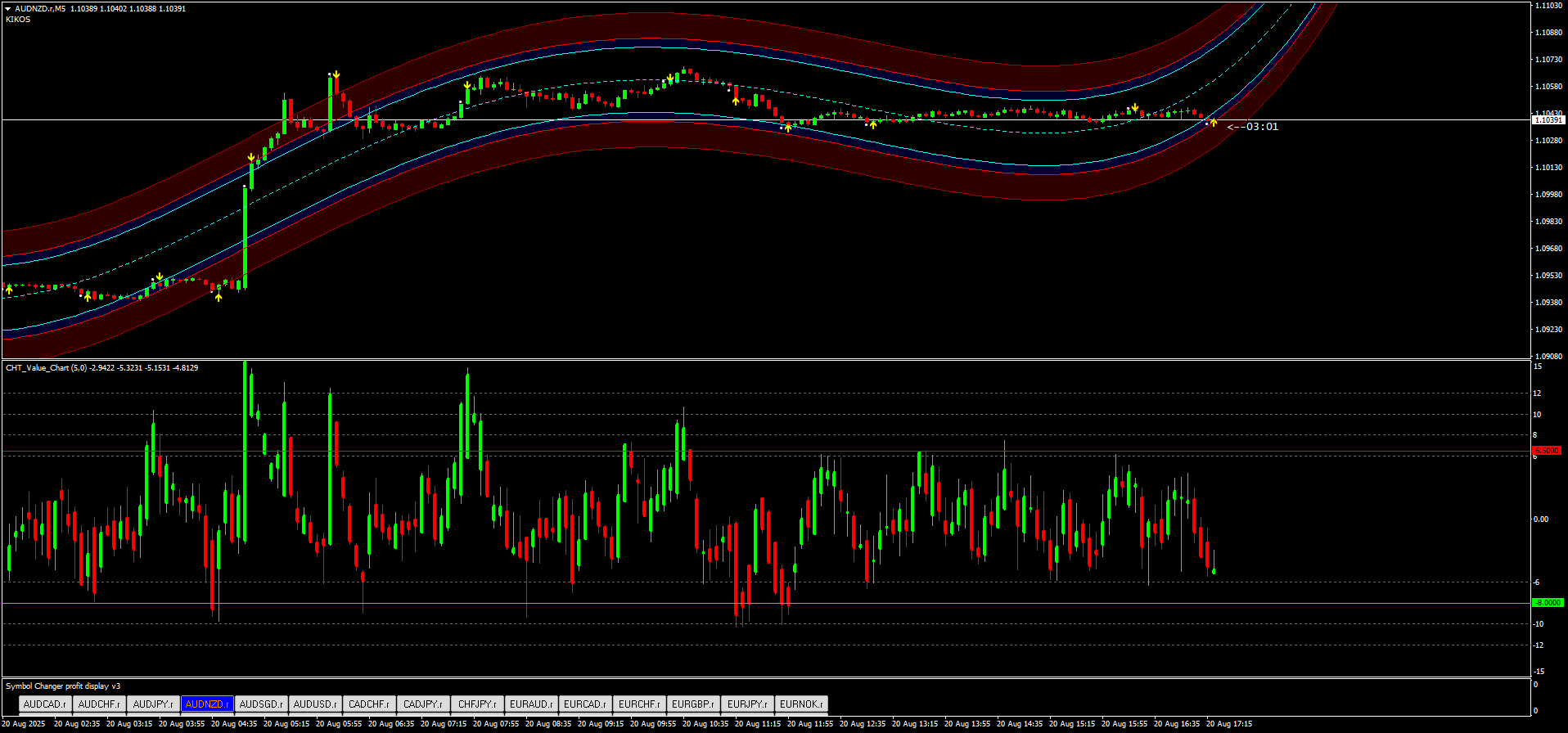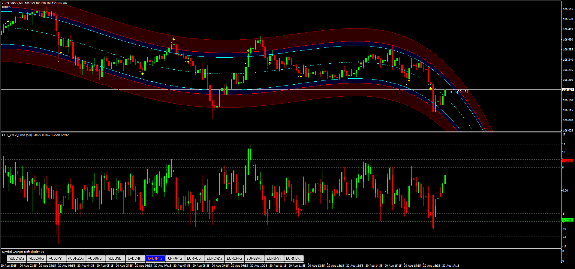 Confirmação de Momentum: O oscilador Monster X V2 OB/OS está na zona verde (Oversold). O histograma do CHT Value Chart está abaixo da linha -6 (zona verde) ou começando a cruzá-la para cima.