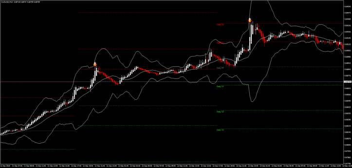 - Níveis de Pivot Points: Saia na banda média com uma relação de 1:1 stop loss.