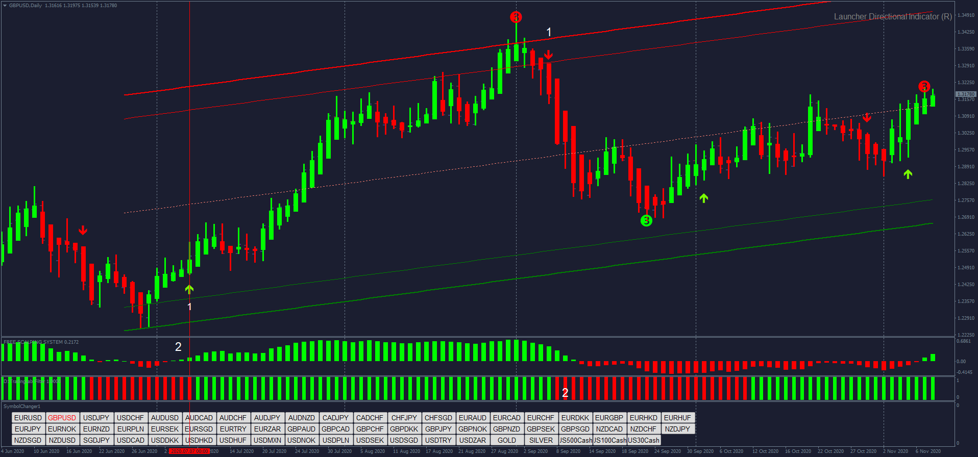 2. O Indicador de Scalping mostra uma barra verde.