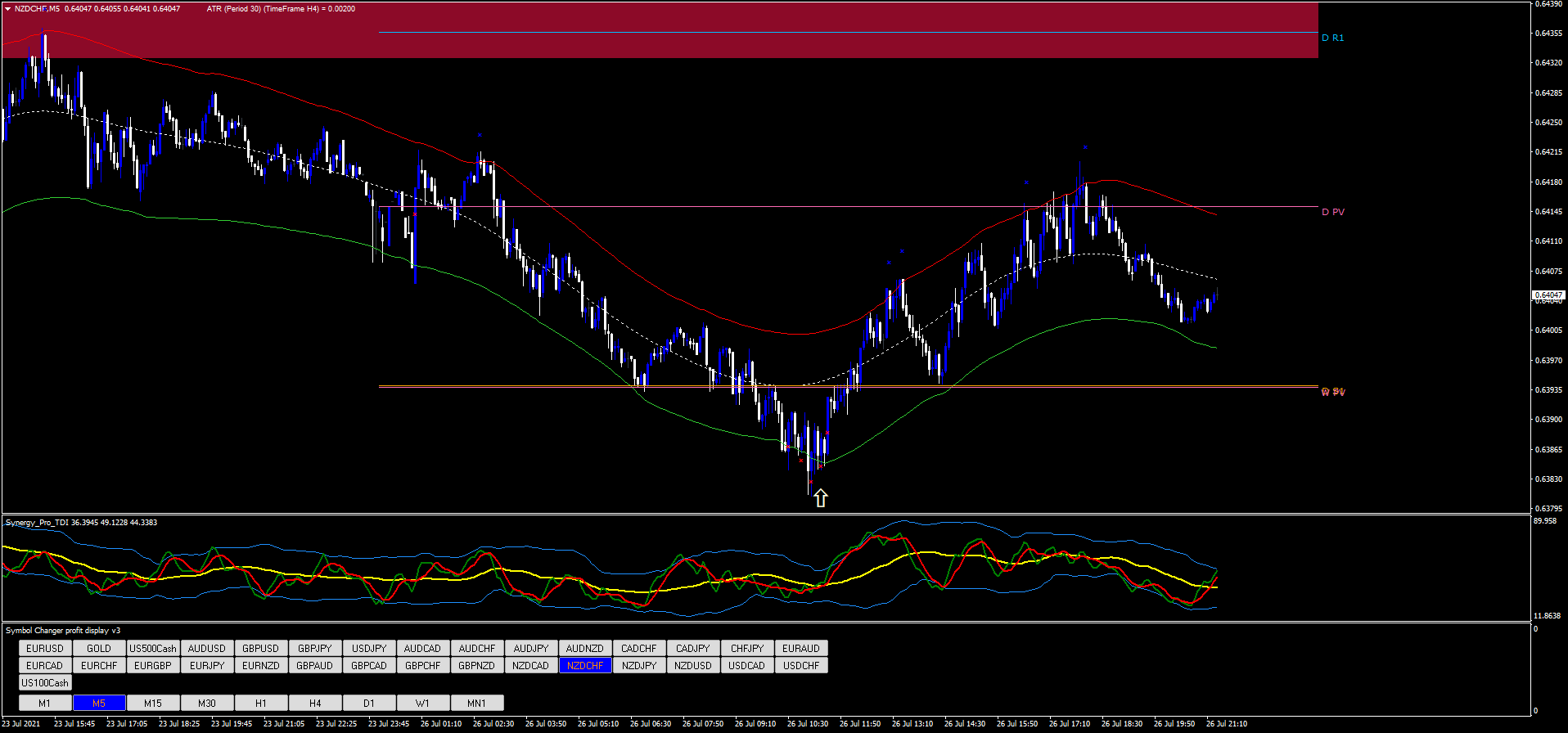 - Synergy Pro TDI: O TDI é essencial para o timing das entradas, fornecendo sinais de cruzamento que indicam possíveis reversões de tendência.