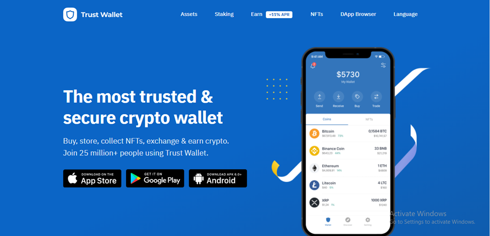 | Trust wallet | Quente | Melhor carteira de criptomoedas móvel | Litecoin, Ethereum, e Tron 160 K+ ativos e blockchains | Mobile e web | Sim | Sim |
