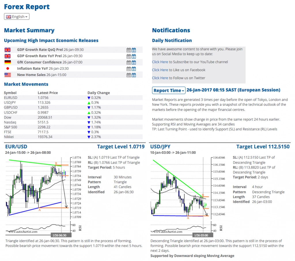 Ele pode ser usado como uma plataforma da web on-line independente ou como um plug-in MT4. Existe uma comunidade online com muito material educacional para Autochartist.