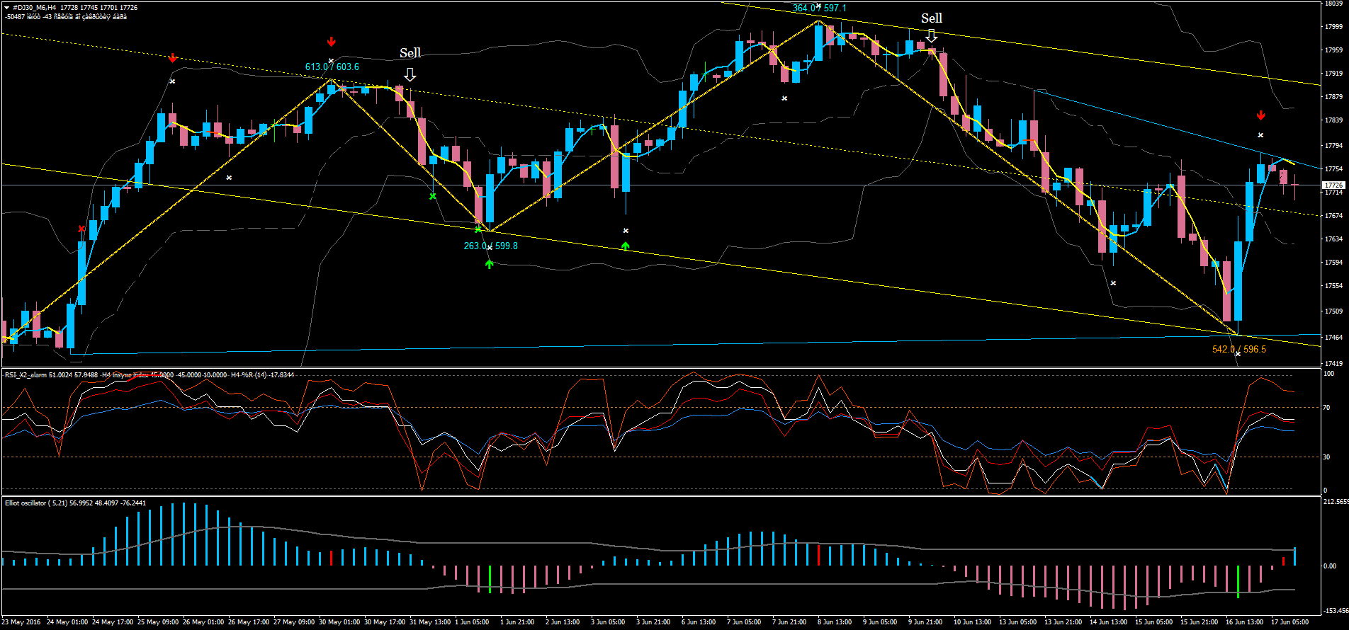 - Configuração: Período 9, cores aqua para compra e vermelho para venda.