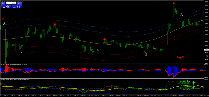 Este indicador combina uma média móvel com bandas de Bollinger para ajudar a identificar a direção da tendência.