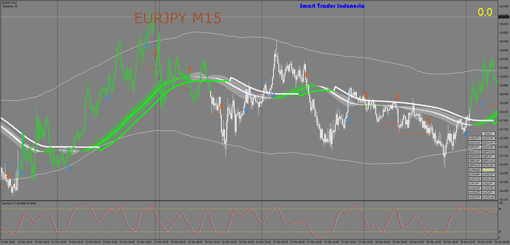 As Bands são utilizadas para confirmar os sinais de compra e venda gerados pelo oscilador Obos. As configurações do período variam de acordo com o time frame utilizado.