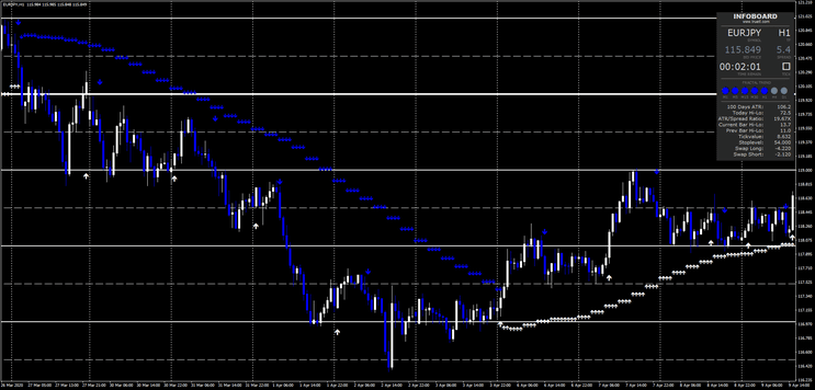 1. Infoboard – O Infoboard é uma ferramenta de informação que fornece dados essenciais sobre a tendência atual do par de moedas. Ele pode exibir informações como direção da tendência de curto, médio e longo prazo, volatilidade atual, níveis de suporte e resistência significativos, entre outros. Essas informações auxiliam os traders na tomada de decisões informadas baseadas no contexto atual do mercado.