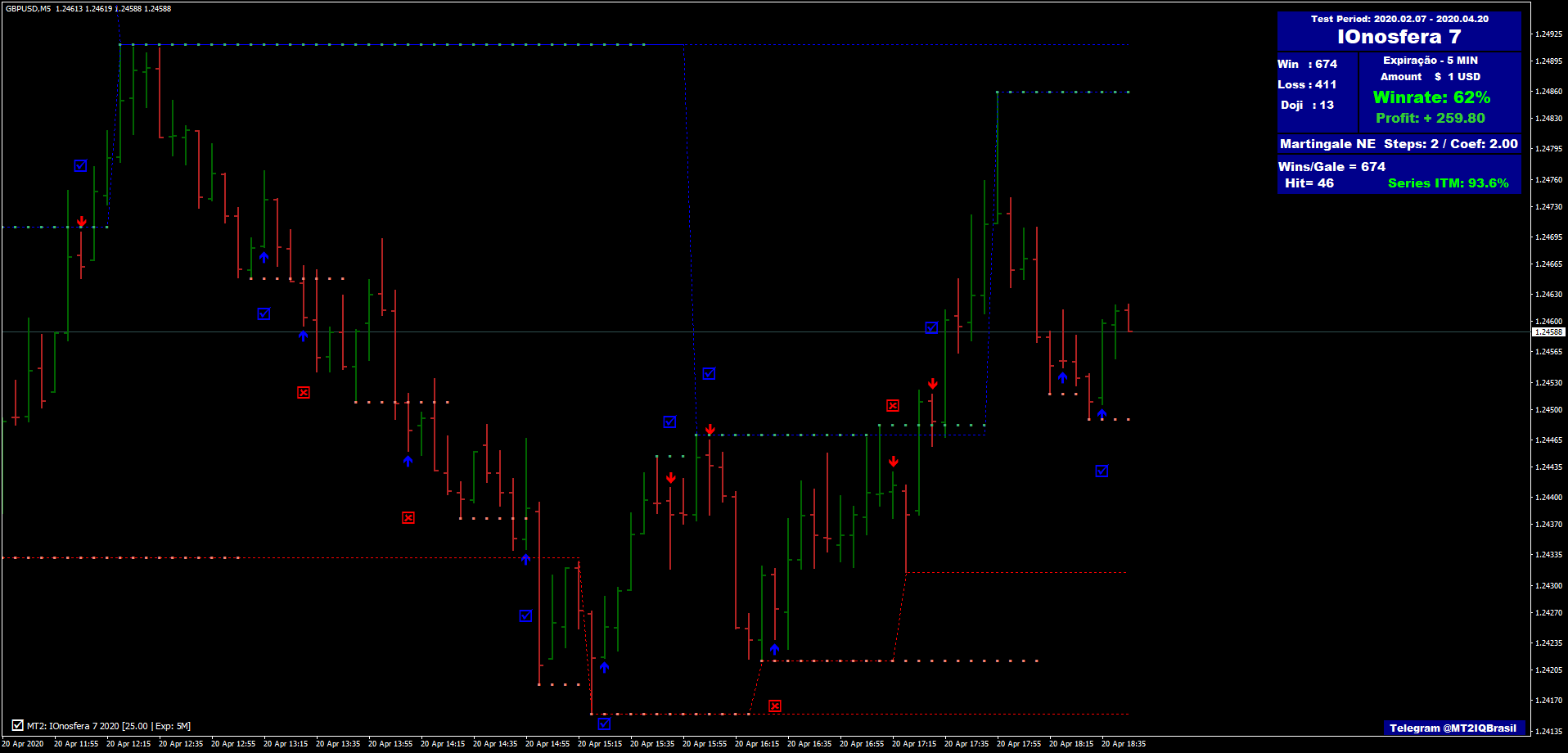 Dica de Ouro: Combine o ponto com o rompimento de uma linha do Ionosfera 6. Se o preço quebra uma resistência e o Ionosfera 7 aponta verde, compre uma opção CALL.