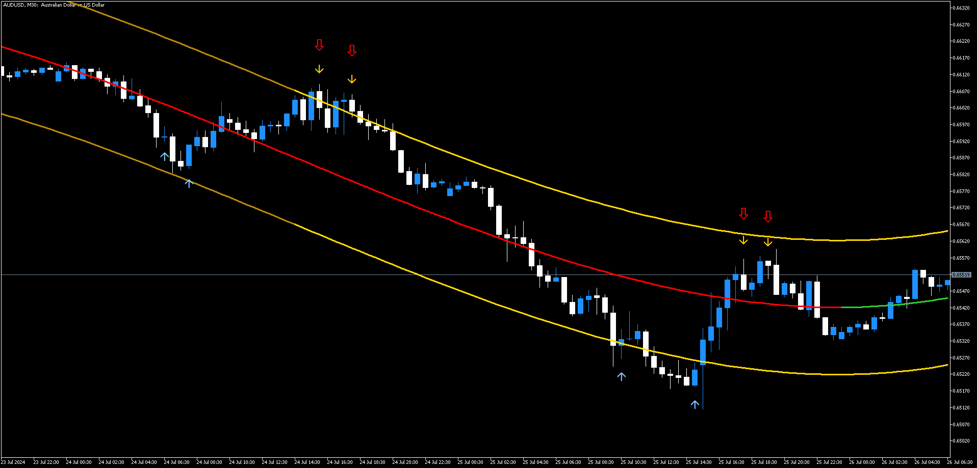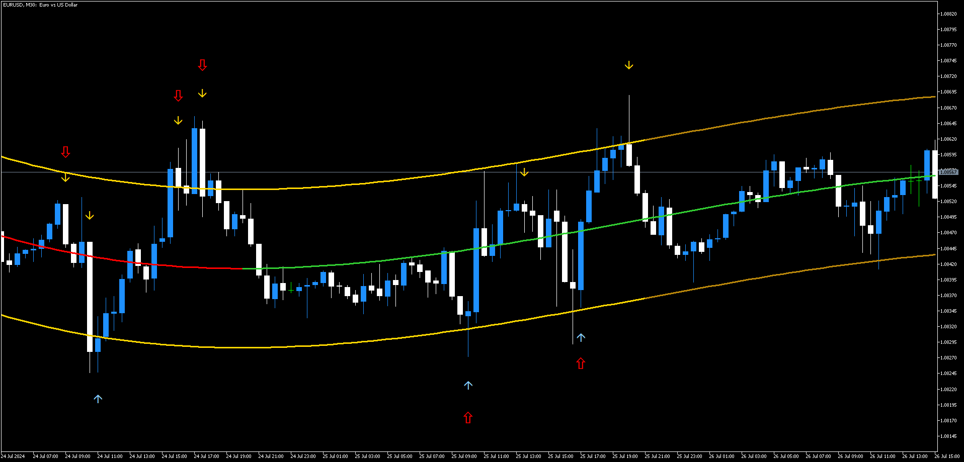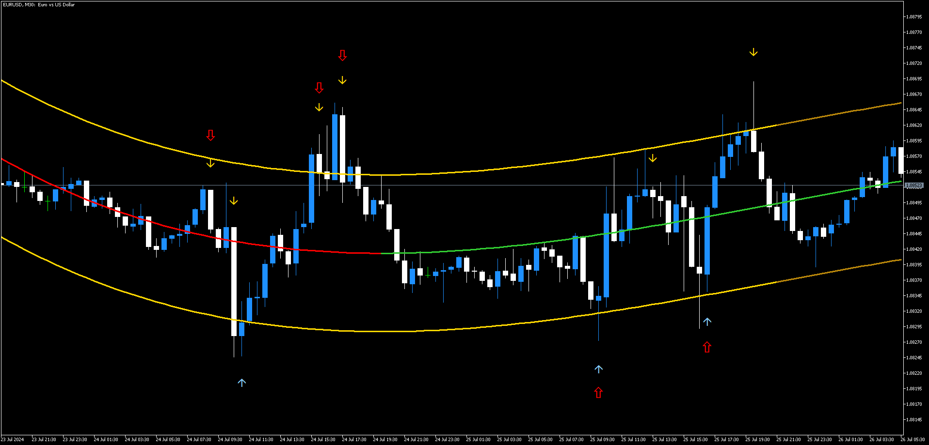 • TMA Arrows: Azul para sinais de compra, amarelo para sinais de venda.